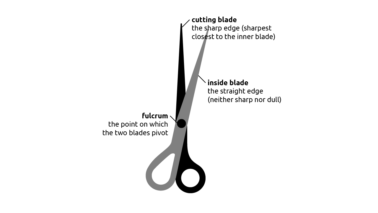 The sharp edges of scissors are wedges which slice through material from opposite directions. The screw between the two blades acts as the fulcrum of a compound lever, and the short handles make cutting along the long edge easy.*Macaulay, 1988